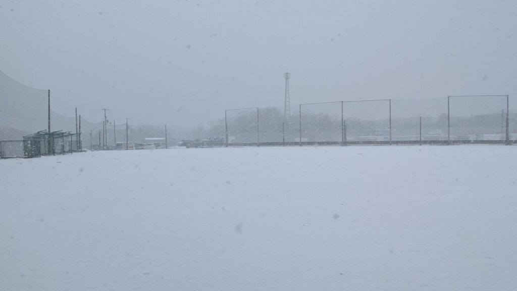 通常通り活動を行っていたのですが、全体ノックが終わり休憩時間に雪が降り始めました。