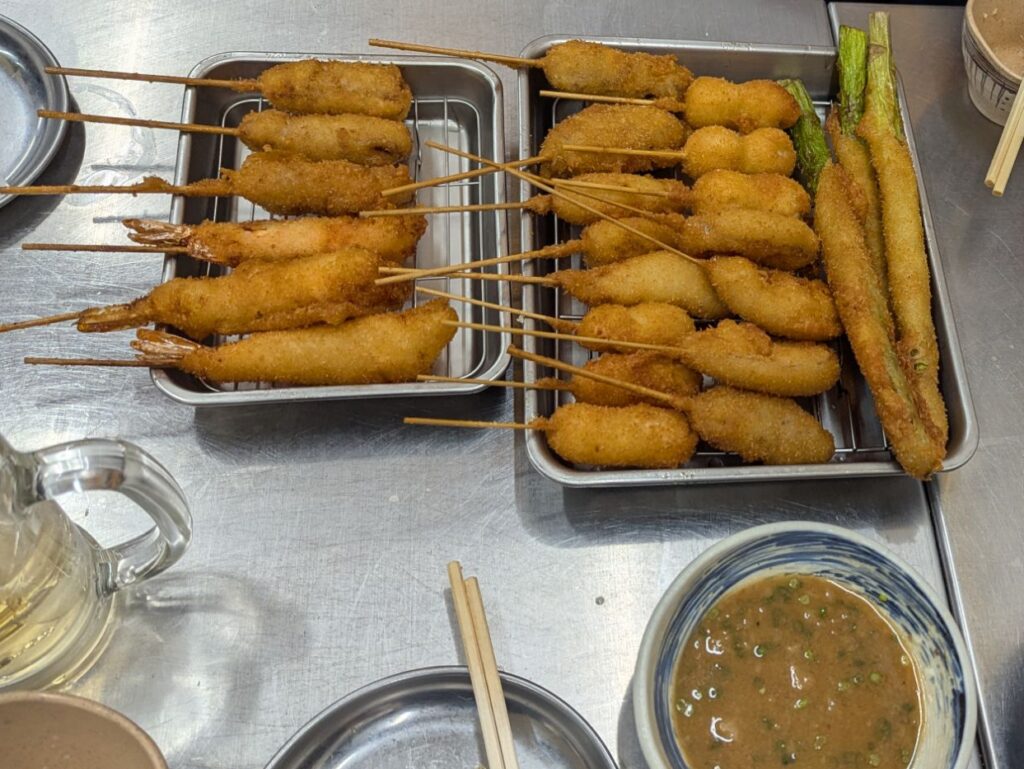 との事で新今宮の新世界まで足を運び、名物の串カツに舌鼓を打ちながら熱く濃い時間を過ごさせていただきました。